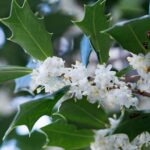 Arbusto sempreverde dal portamento eretto, cespuglioso, e compatto. Presenta foglie coriacee, profondamente dentate di color verde lucido intenso e in primavera produce molti piccoli fiori di colore bianco profumati.